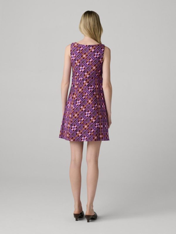 Our Amelia Dress is a structured mini, finished in a playful bold plaid.