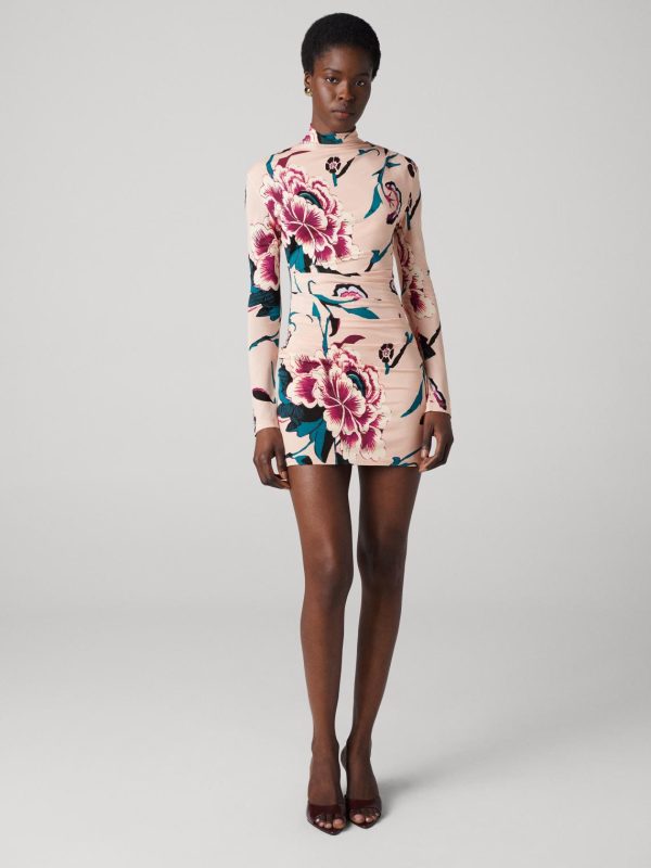 The Amy Dress is a sleek mini made from smooth jersey with a bold floral print for a modern, stylish look.