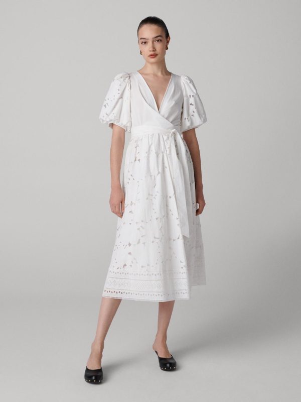 Diane Von Furstenberg Delilah Eyelet Cotton Wrap Dress White | Women Midi Dresses