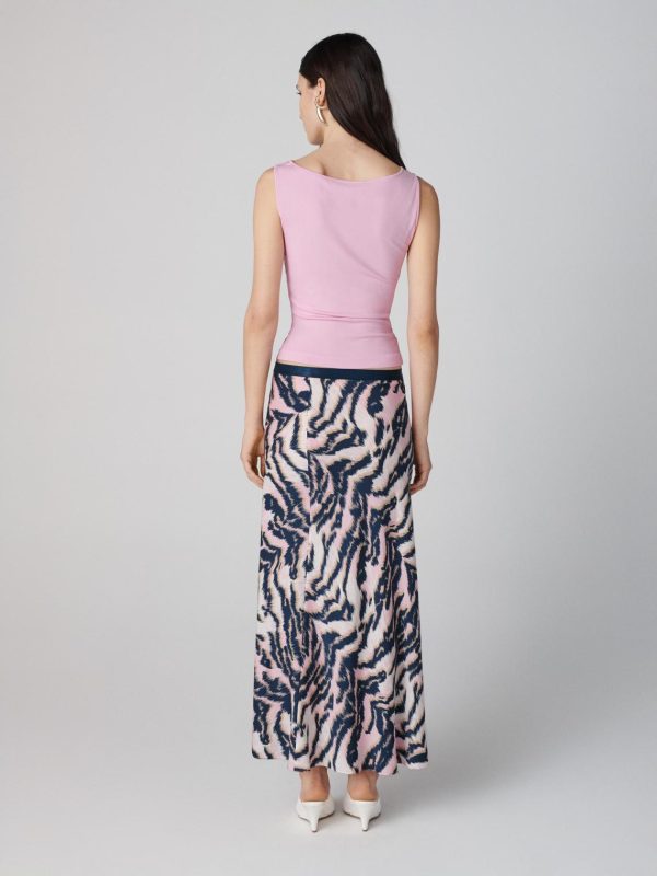 The Isadora mid-rise skirt is cut from 100% silk, which gives it an ultra-soft feel and a sashaying skirt.
