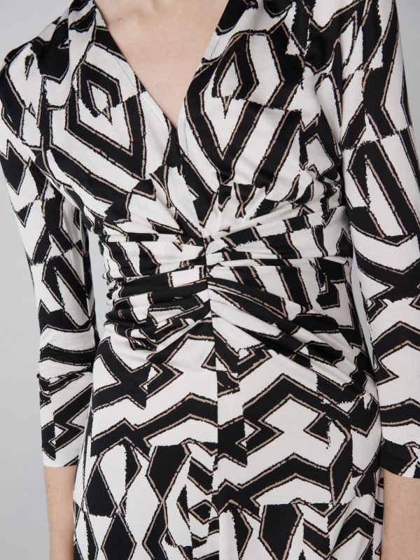 - Centered ruching on the bodice