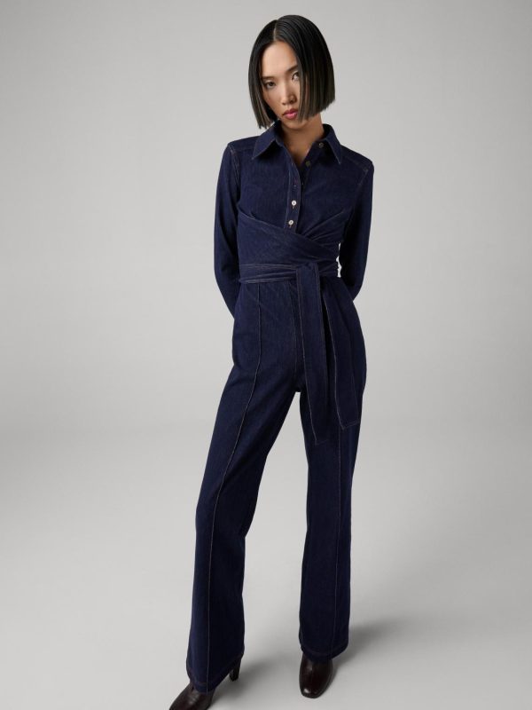 Channeling iconic 70s glamour, our bestselling Michele jumpsuit features fresh knit denim construction designed for effortless movement and inspired by Diane’s legendary Studio 54 era.