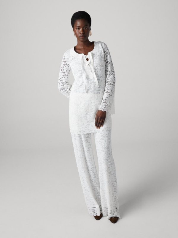 - Unlined long sleeves with scalloped edges