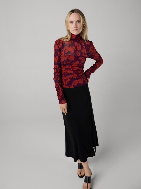 The Piper is an effortless turtleneck in soft, stretchy mesh—ideal for transitioning between seasons.