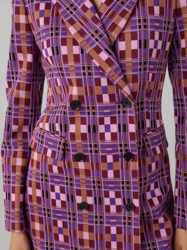 Diane likes to say our suiting is soft enough to sleep in. The Virginia knit jacquard jacket has a soft, textured feel and can be worn open or closed as a mini dress.